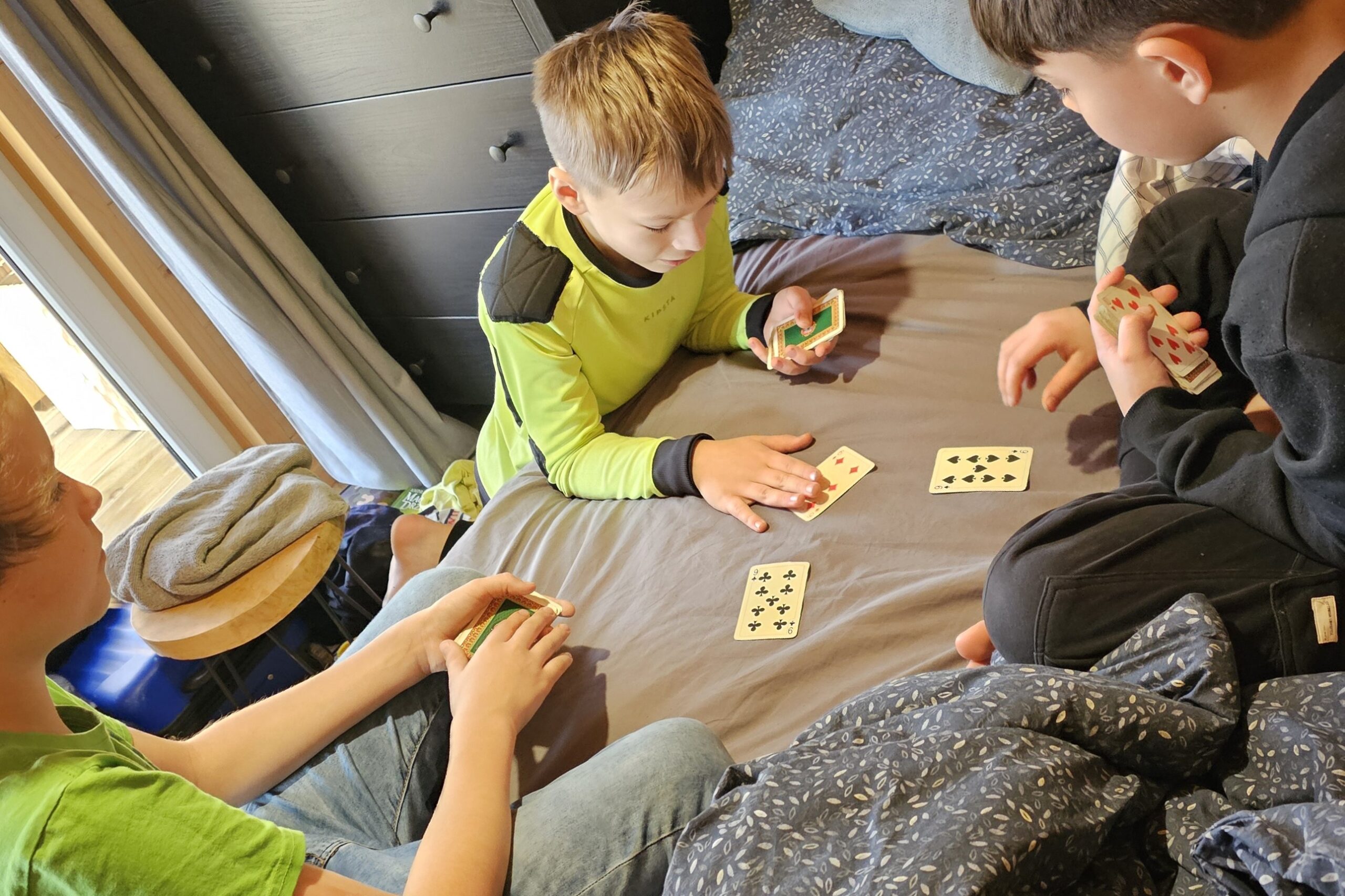 Na tarasie każdego domku znajdziecie gry na zewnątrz – badminton, boulle, itp., wewnątrz czekają planszówki i kilka zabawek dla dzieci.