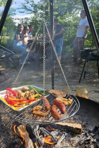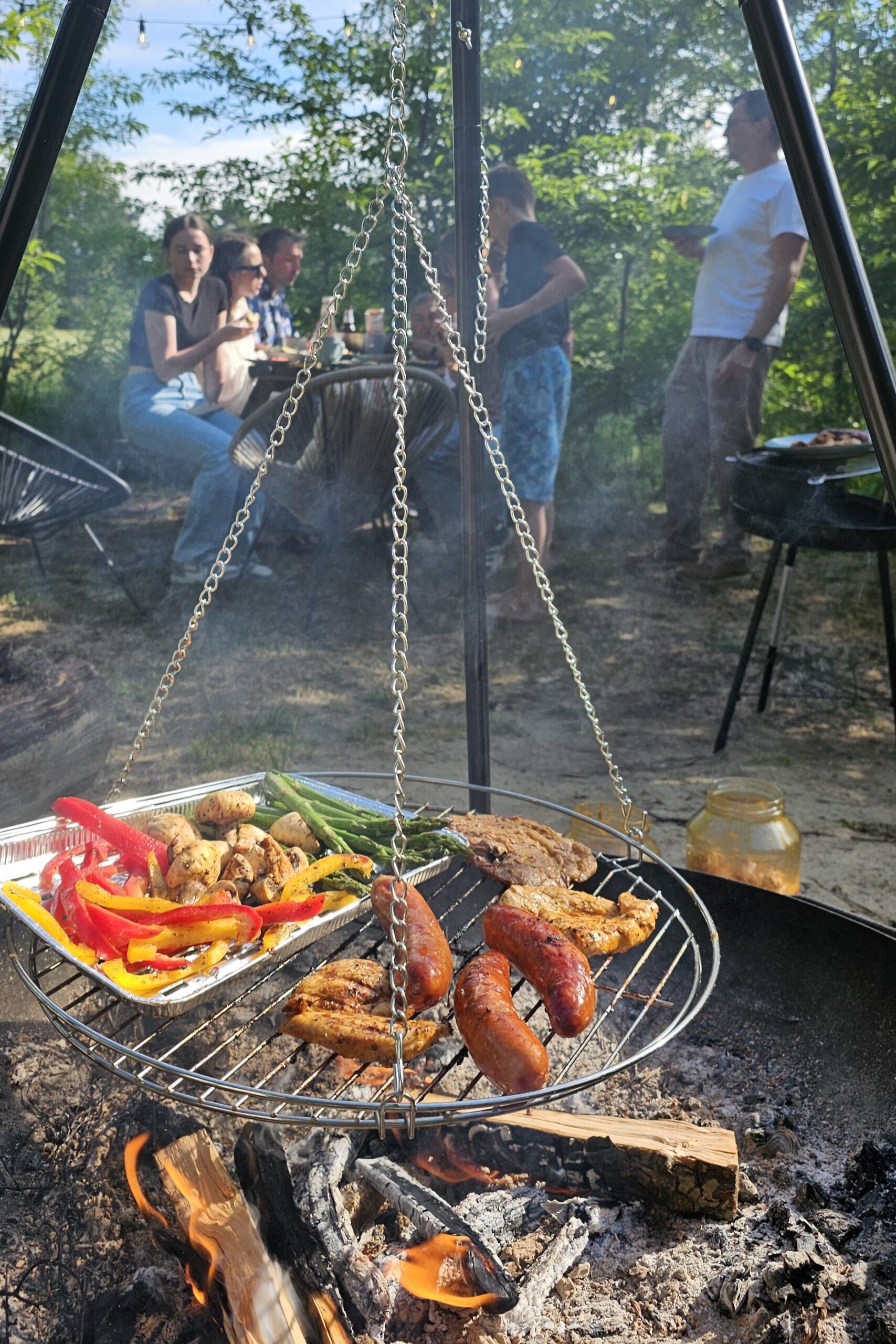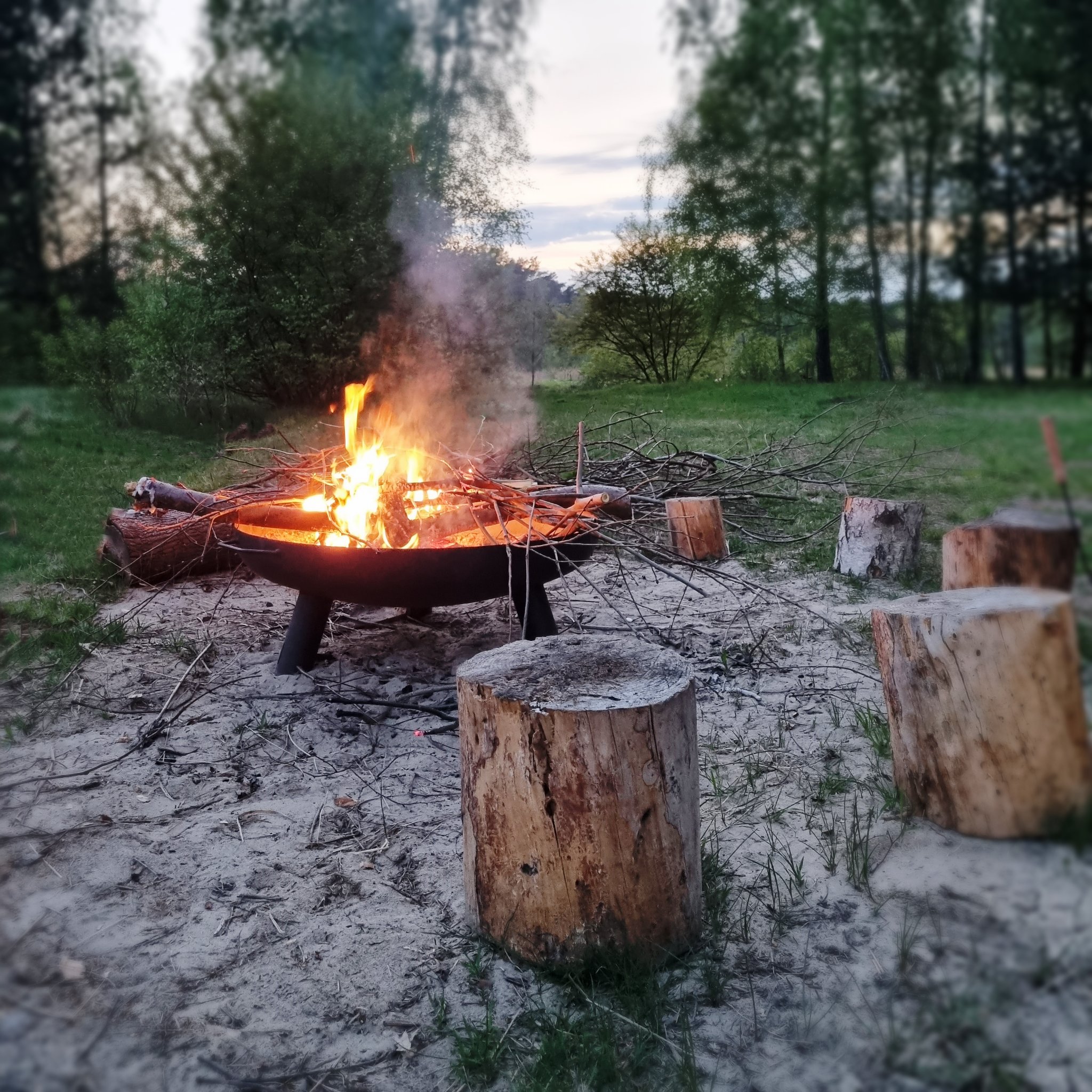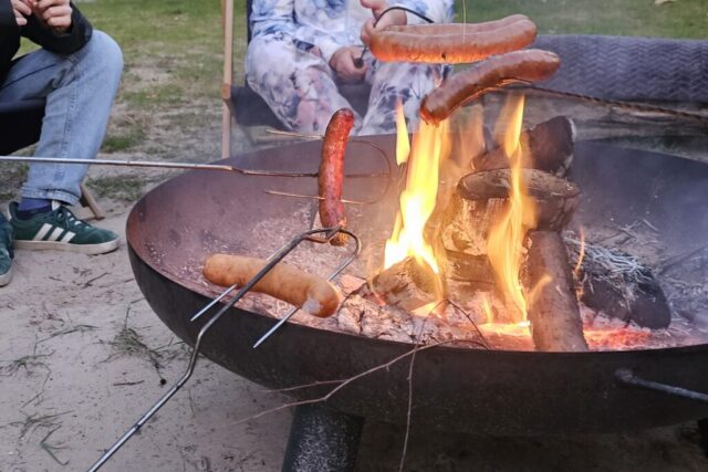 Wieczorem możesz własnoręcznie upiec kiełbaskę – przed domkiem czeka na Ciebie własne palenisko lub grill.