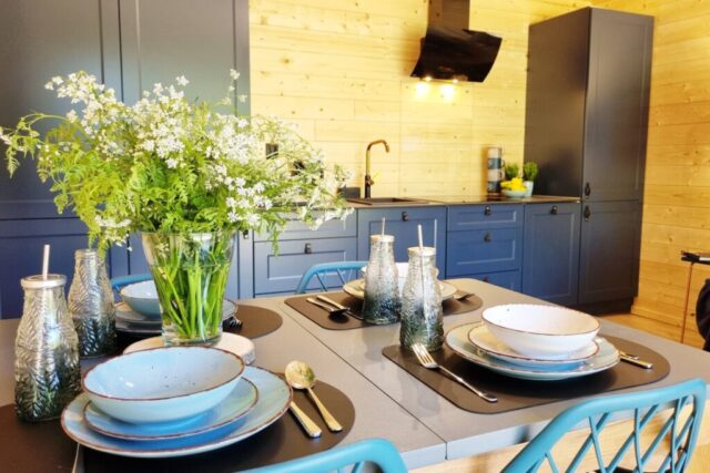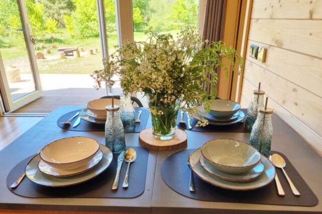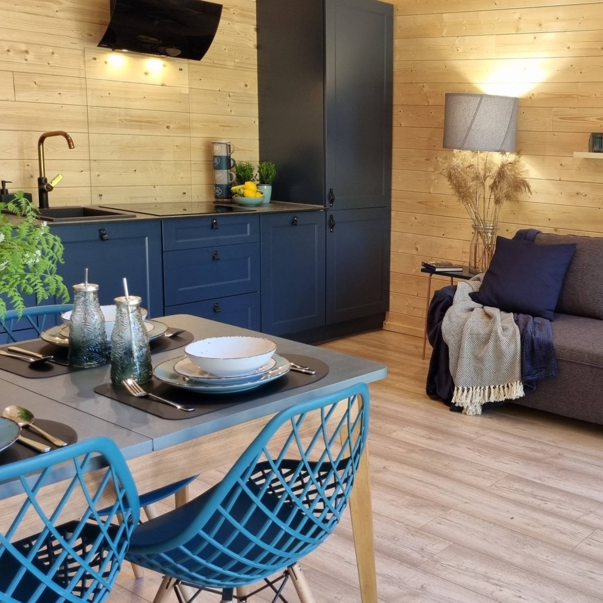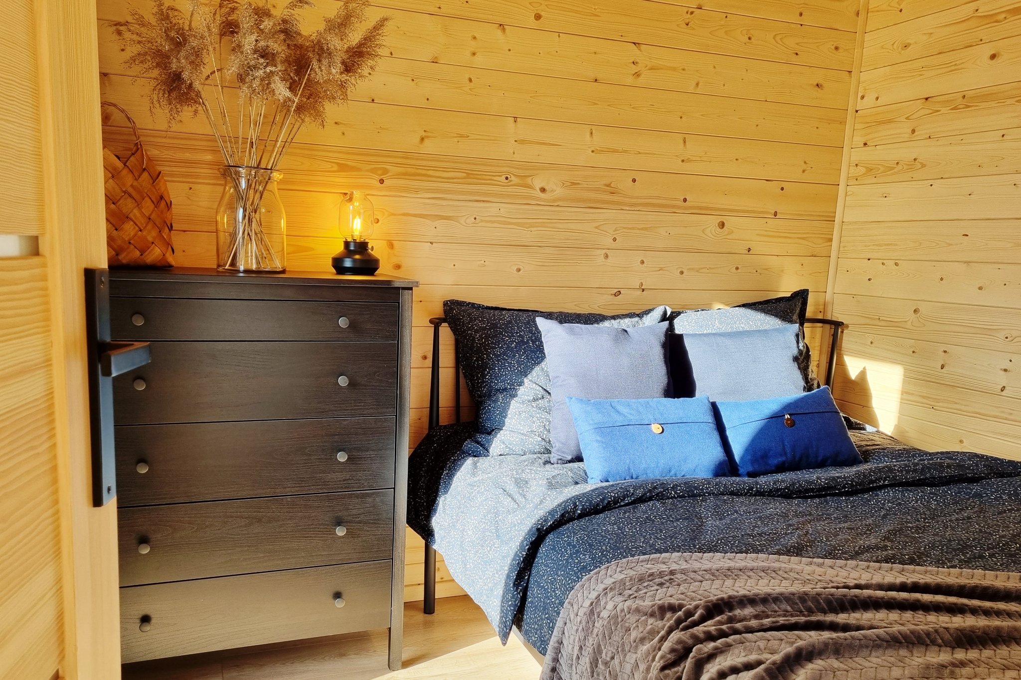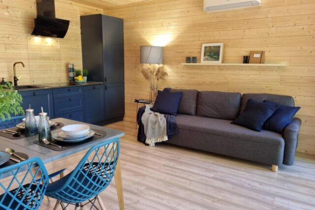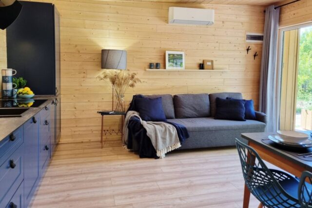 Każdy domek pomieści wygodnie 2–4 osoby i oferuje: sypialnię z podwójnym łóżkiem, salon z rozkładaną sofą i stołem, dobrze wyposażony aneks kuchenny, łazienkę z prysznicem walk-in. W domku nowoczene udogodnienia: klimatyzacja, podgrzewana podłoga, Wi-Fi mają sprawić, aby wypoczynek pośród przyrody był komfortowy.
